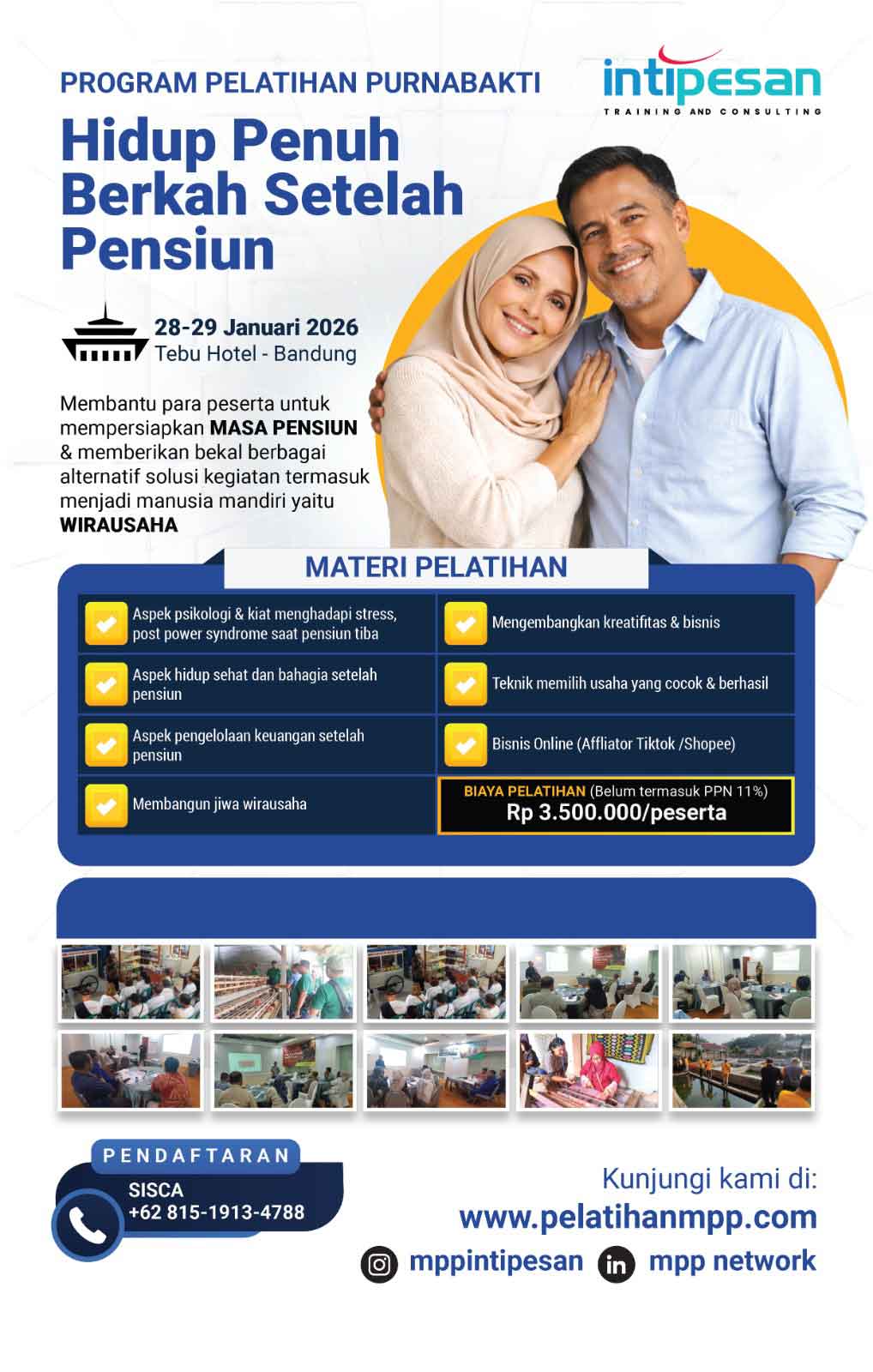 Masa pensiun bukanlah akhir dari segalanya, diharapkan calon pensiunan dapat menciptakan aktifitas yang bermanfaat bagi dirinya sendiri maupun lingkungan sekitar. untuk menciptakan hal tersebut dibutuhkan berbagai bekal pengetahuan maupun keteranpilan termasuk didalamnya pengetahuan dan kreatifitas usaha yang dapat dikembangkan dan mengetahui cara mengelola keuangan keluarga dengan baik.